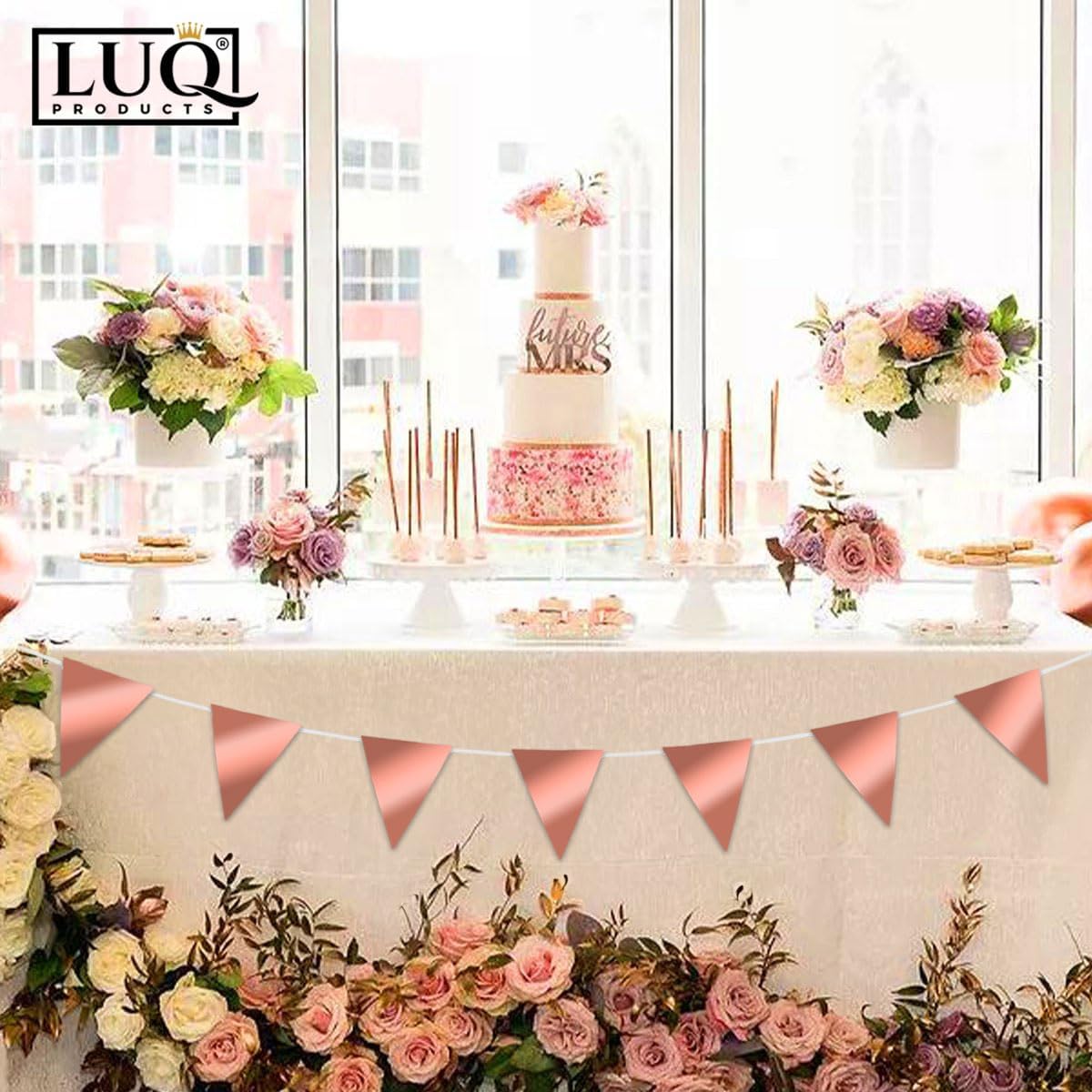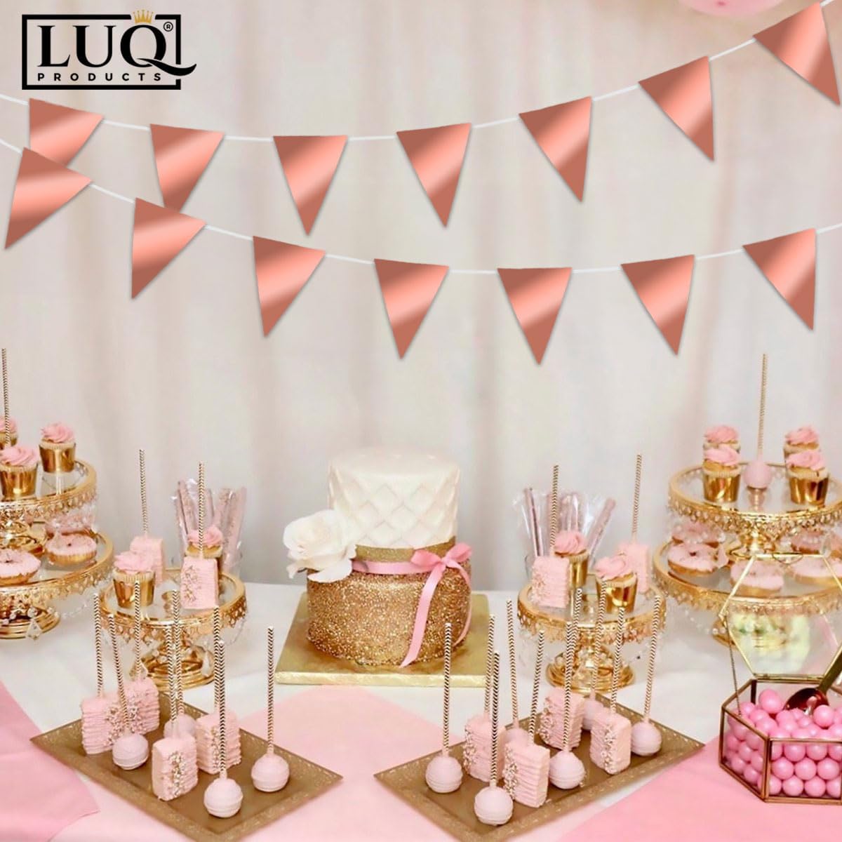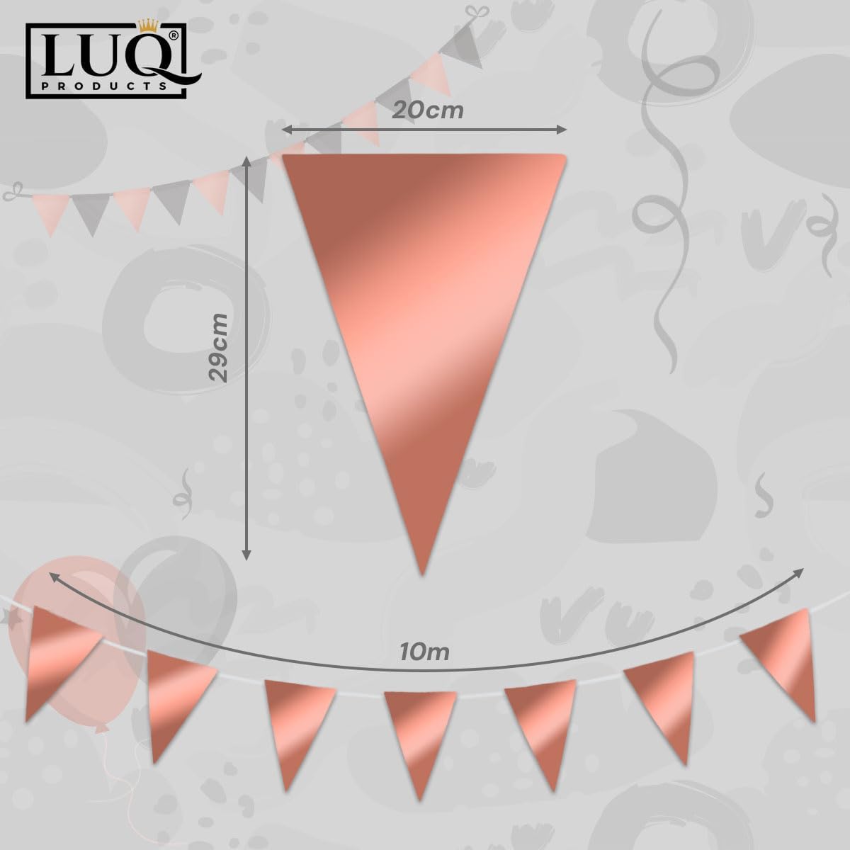 Breng een vleugje luxe naar je feest met de LUQ – Luxe Rose Gouden Slingers! Deze prachtige vlaggenlijn van 10 meter is perfect voor elke gelegenheid, van verjaardagen tot bruiloften en andere feestelijke evenementen. De elegante combinatie van rose goud zorgt voor een chique uitstraling die elke ruimte opfleurt.