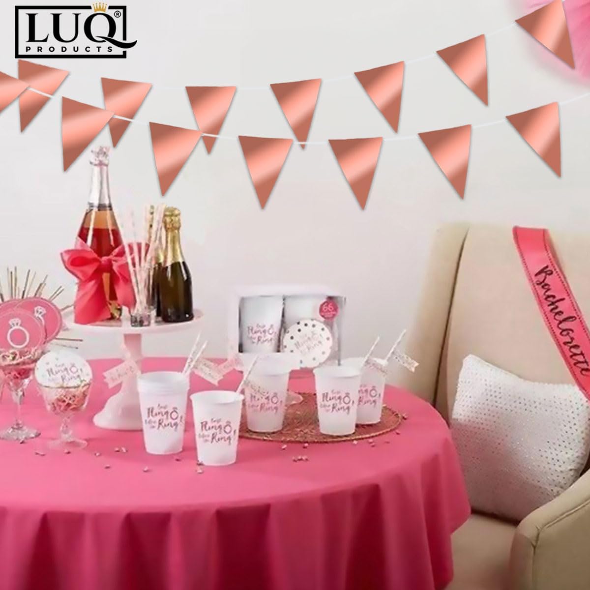 De LUQ – Luxe Rose Gouden Slingers zijn niet alleen stijlvol, maar ook van hoge kwaliteit, waardoor ze een geweldige aanvulling zijn op jouw feestversiering. Maak van jouw speciale gelegenheid een onvergetelijke ervaring met deze schitterende vlaggenlijn!