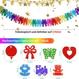Breng kleur en vreugde in elke gelegenheid met onze 7 stuks kleurrijke papieren decoratie slingers! Deze prachtige 3 meter lange regenboog papieren slinger is perfect voor carnaval, fasching, verjaardagen, bruiloften en jeugdwijdingen. De slingers zijn gemaakt van hoogwaardig papier en zijn herbruikbaar, waardoor ze niet alleen een feestelijke sfeer creëren, maar ook milieuvriendelijk zijn. Hang…